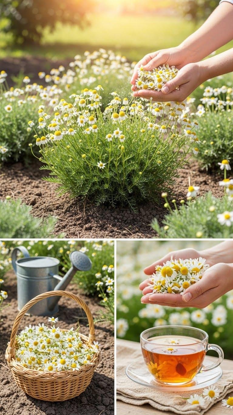 You’ll grow organic chamomile for dry, airy soil, regular watering, and light trimming.