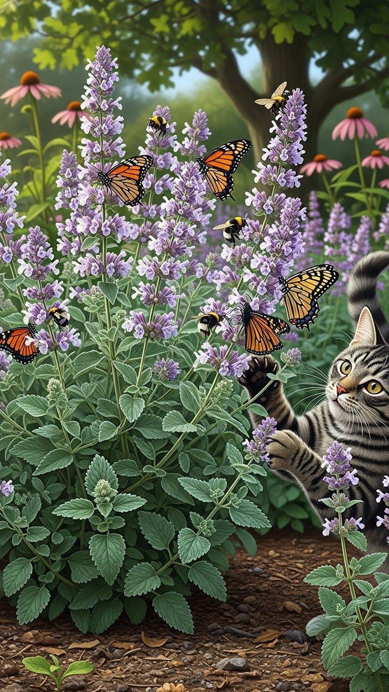 Give catnip a sunny to partly shaded spot with well-drained soil and you’ll get a vigorous, low-maintenance perennial that’s both useful and entertaining: Nepeta cataria produces gray-green foliage and spikes of small, lavender-white flowers that attract pollinators while its volatile oils reliably charm cats. You’ll use it for companion planting, pest deterrence and feline enrichment, pruning to contain spread and encourage bloom.