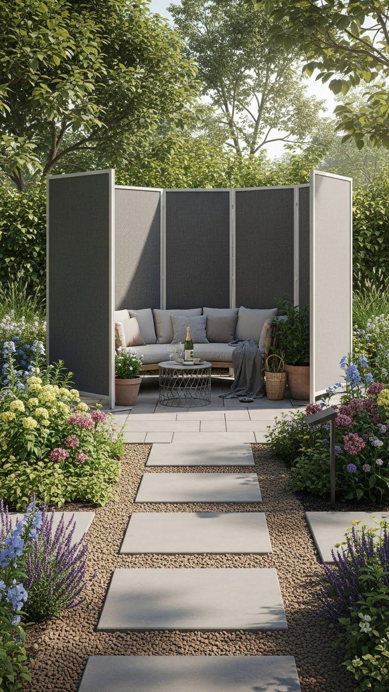 Fold out folding freestanding panels to create flexible divisions that work with your planting beds and hardscape. You can position portable privacy screens to shelter seating, shade tender plants, or guide pathways without permanent anchors.