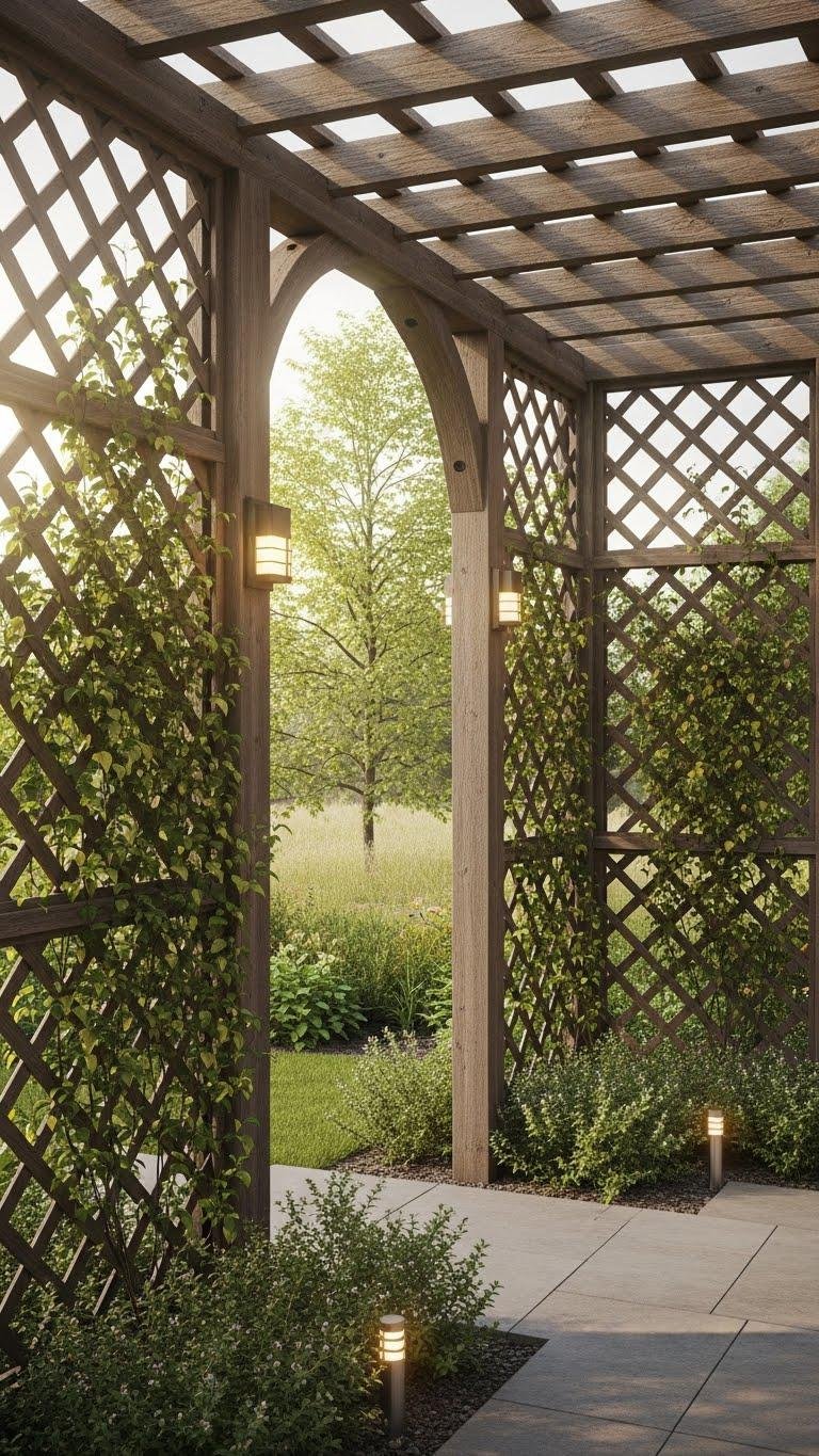 Lattice-sided arbors and pergolas give you a structured yet breathable screen that supports climbers, frames sightlines, and defines outdoor rooms without blocking light.
