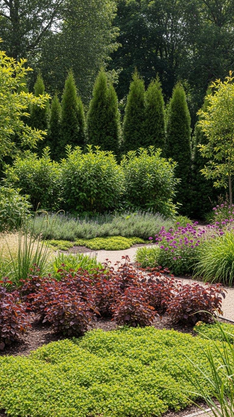 Narrow evergreen hedge rows make a lot of sense for tight yards, because they give year-round screening without taking up much ground.