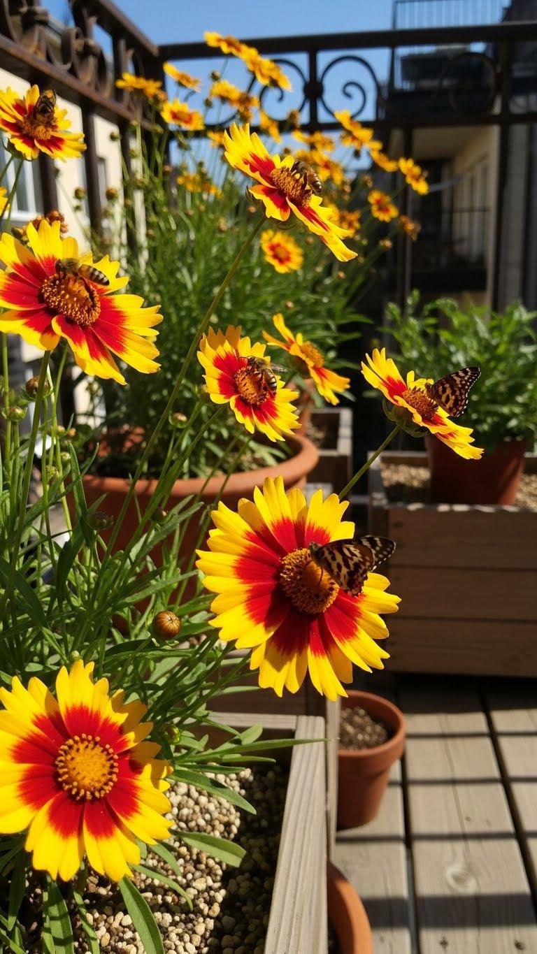 Usually you’ll find coreopsis thriving where sun is strongest, and it’s a perfect pick for a low‑maintenance balcony because it tolerates heat, drought, and poor soil without sulking.