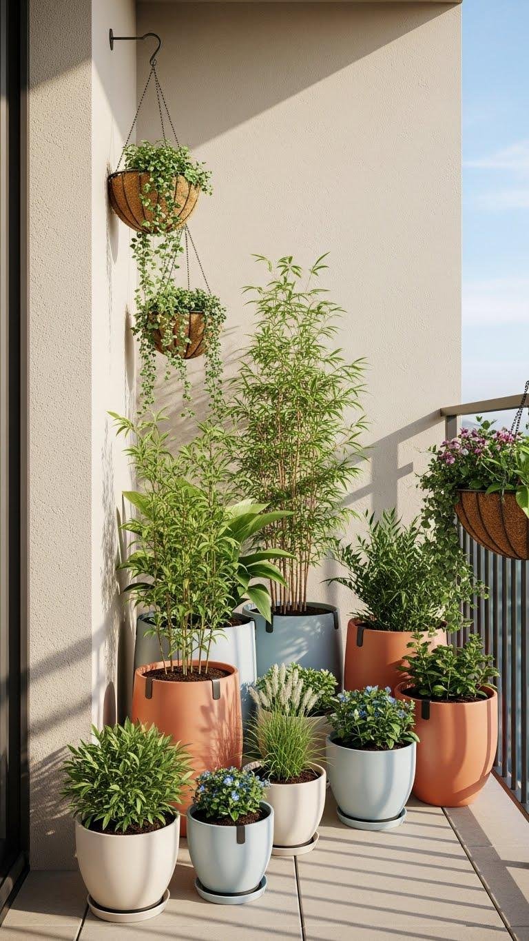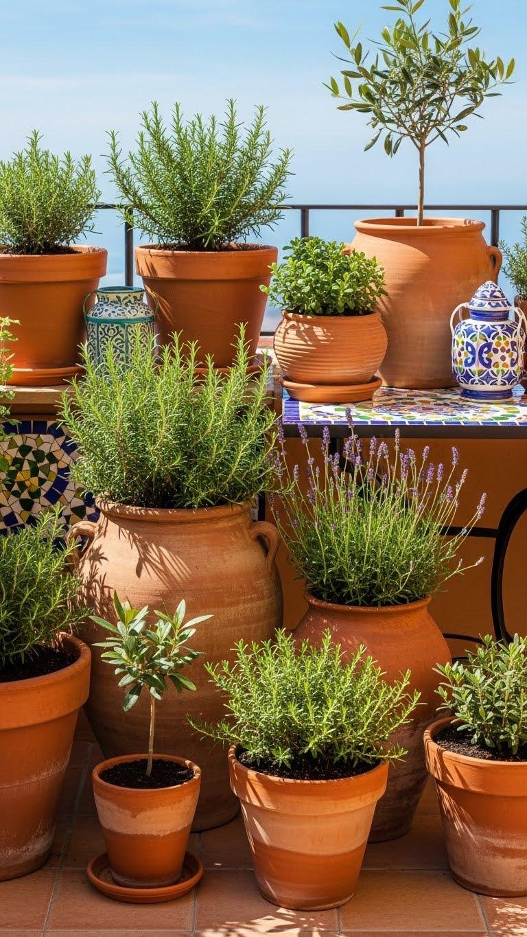 Drawing on warm, sun-drenched colors and breathable clay, terracotta pots instantly lift a balcony’s mood while helping regulate soil moisture for Mediterranean herbs and drought-tolerant plants.