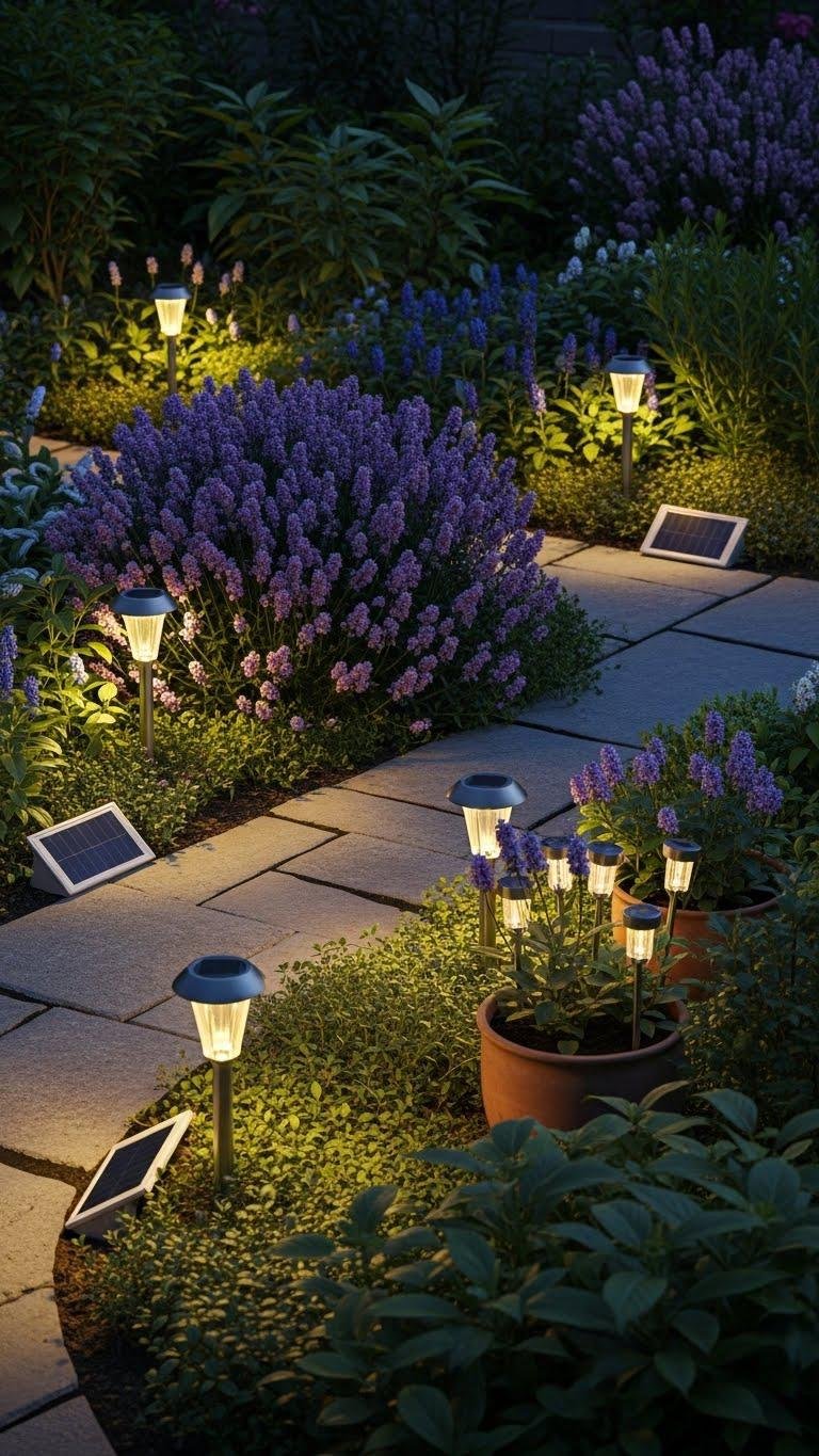 Once you’ve clustered plants into a sheltered microclimate, extend that cozy feel into the evening with solar-powered lighting that highlights foliage and pathways without wiring or upkeep.