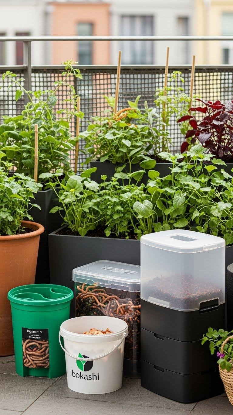 Composting on a balcony gives your container plants a steady source of nutrient-rich, moisture-retentive soil without needing a yard; you can set up a compact worm bin, bokashi bucket, or tumbling composter against a wall or under a bench to save floor space and keep odors contained.