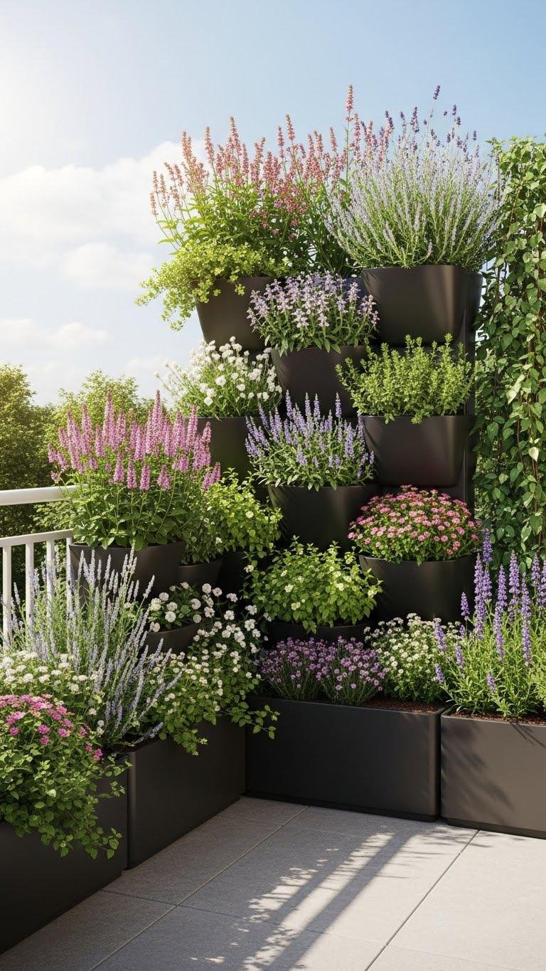 Start by mapping your balcony wall—measure width, height and light patterns—so you can fit wall-mounted planters where they’ll get the sunlight they need.
