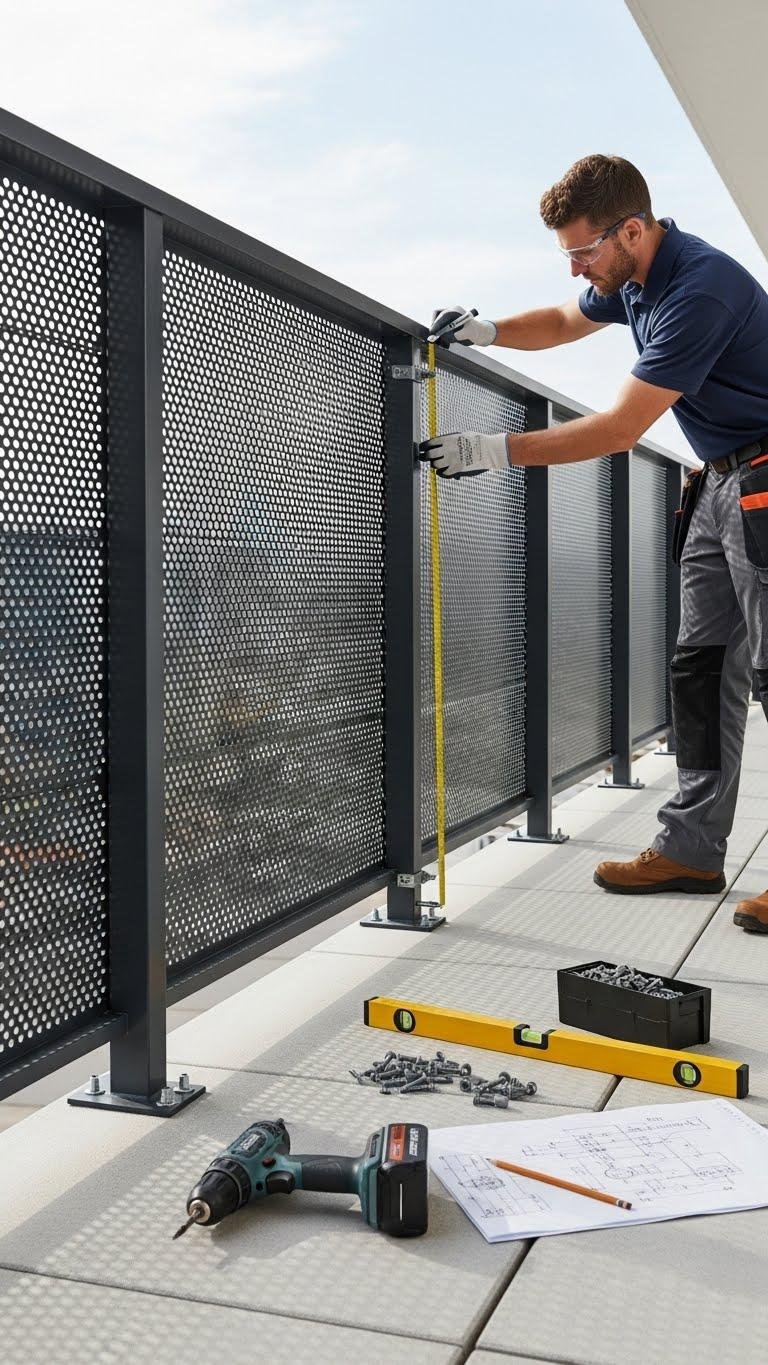 Mount metal perforated panels by first mapping out exact anchor points and checking that your balcony frame can take the added weight and wind load.
