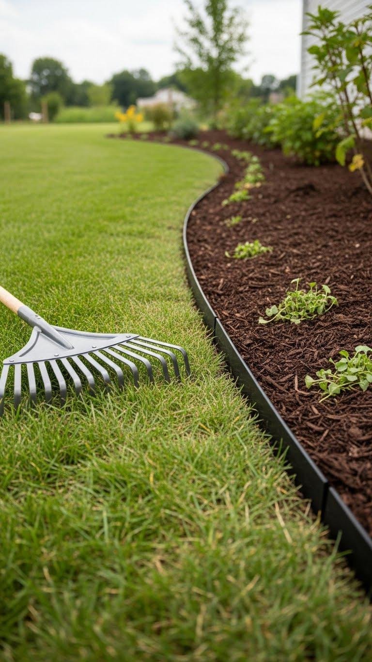 Combine simple edging techniques for clean lines without heavy tools. Mulch supports weed prevention and saves watering time, so you’ll enjoy a neat, low-fuss bed that frees your weekends.