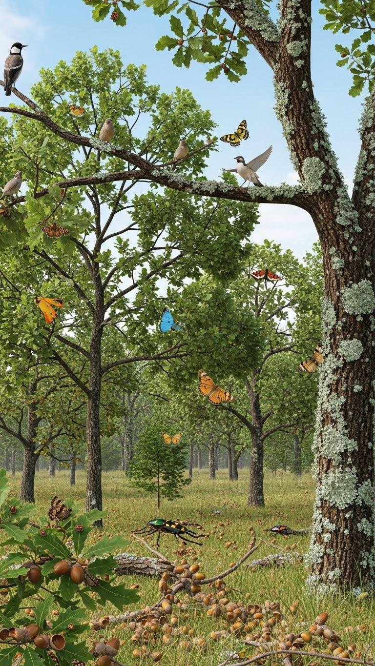 Although they may look like simple shade trees, oaks (Quercus spp.) function as keystone species in many temperate and Mediterranean ecosystems, supporting more animal life per tree than almost any other native genus.