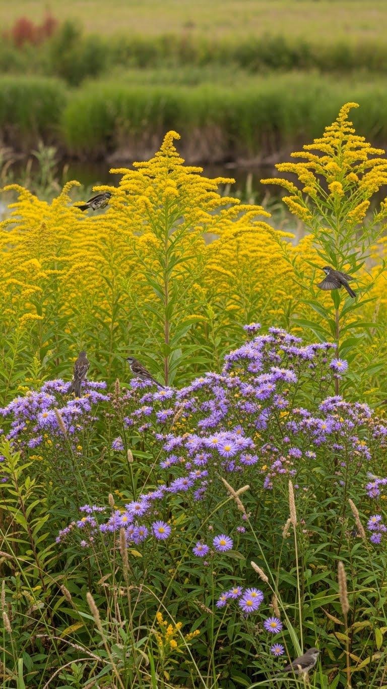 When you plant native goldenrods (Solidago spp.) and asters (Symphyotrichum spp.) along meadow edges and riparian margins, they extend the flowering season from late summer into fall and sustain migrating and resident songbirds through declining insect abundance.