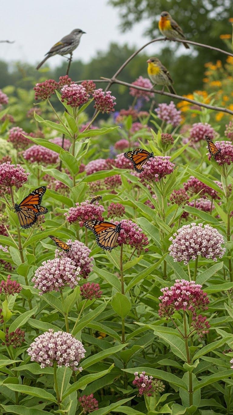 You’ll plant milkweed to restore monarch habitat, support pollination services, and tolerate sap sucking insects that attract predators. Manage stands locally to maximize diversity and seasonal freedom for wildlife.