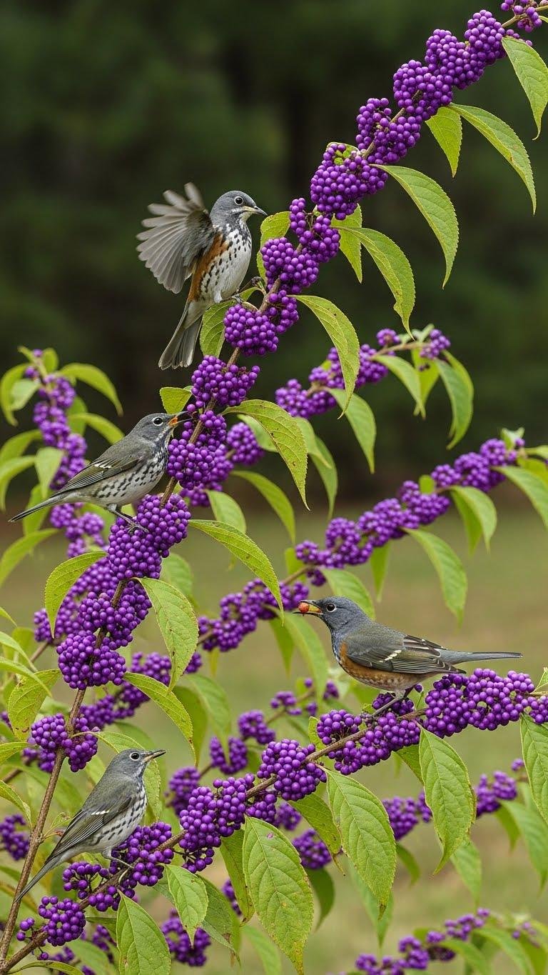 Often overlooked, American beautyberry (Callicarpa americana) reliably supports songbirds and migrating thrushes with its striking clusters of violet berries from late summer into winter. You’ll observe clear wildlife interactions as birds feed and disperse seeds.