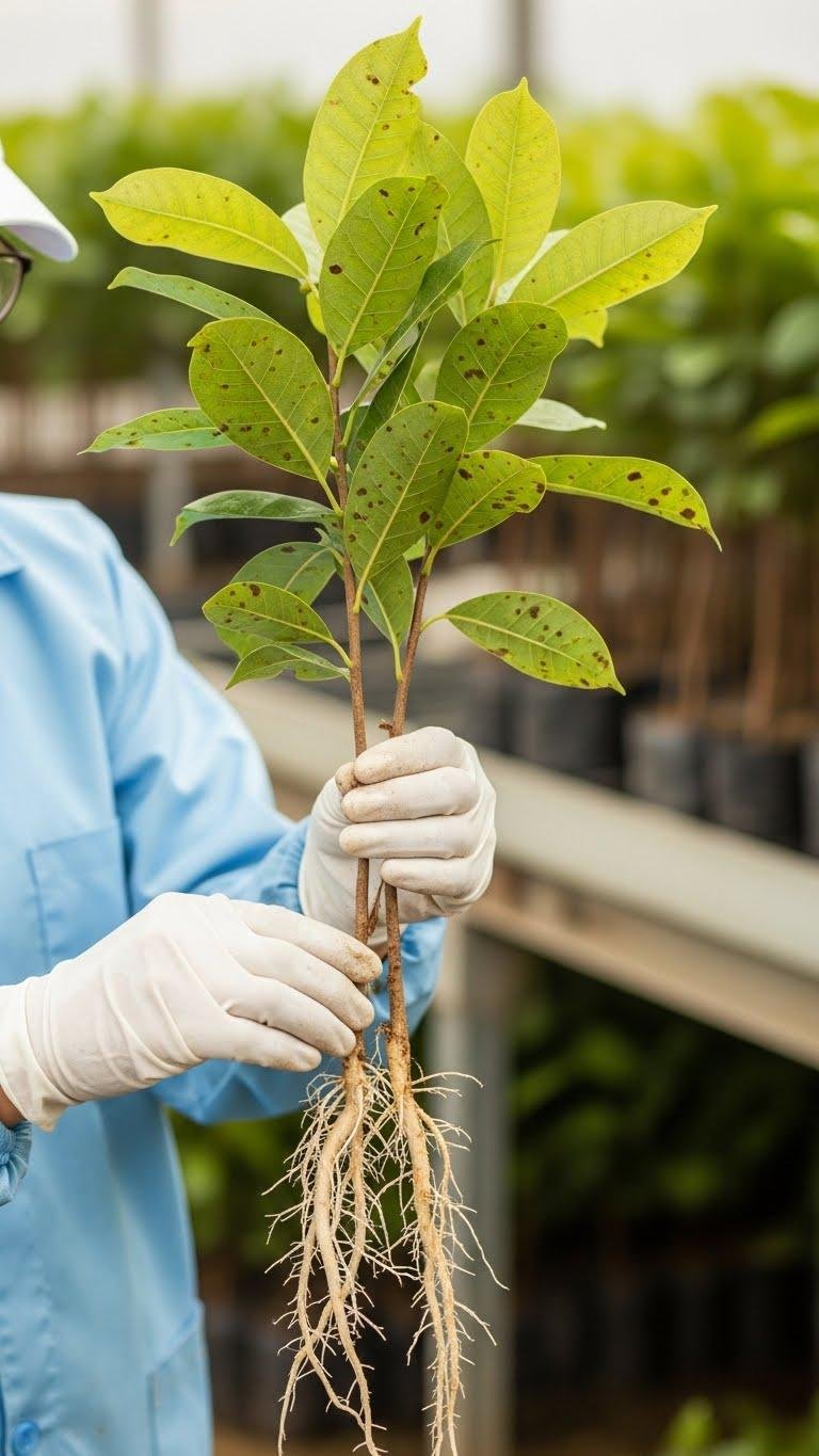 Then verify nursery sanitation and ask about soil pathogens history.