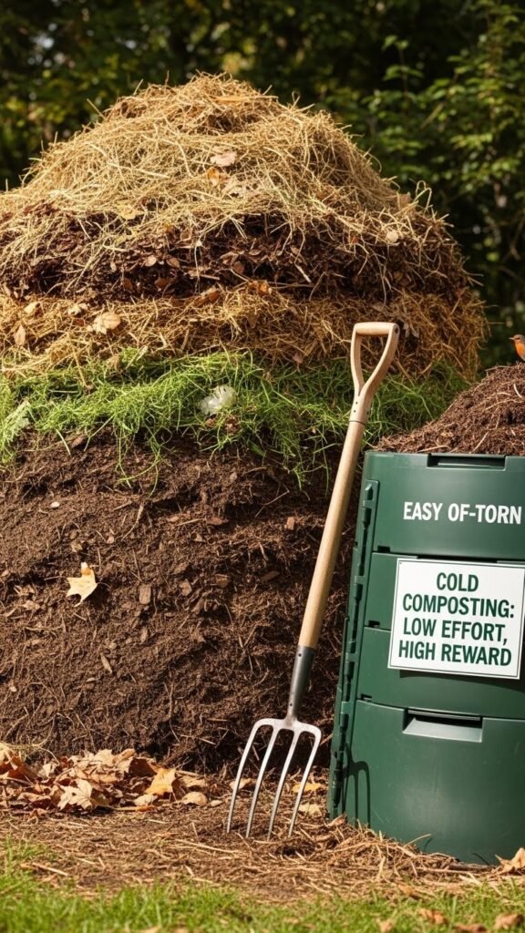 Opting for cold composting lets you recycle kitchen scraps and yard waste with minimal effort — you just add materials and let nature do the work.