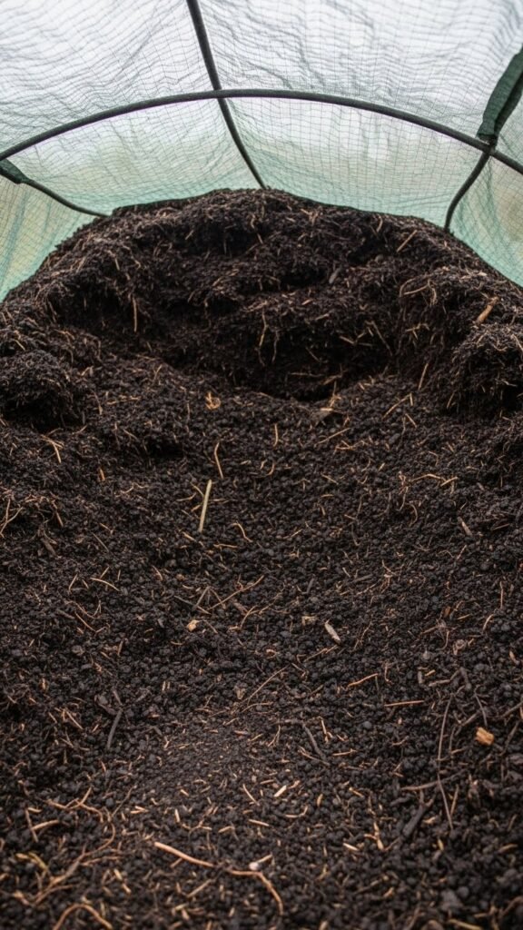 Once your compost looks dark, crumbly, and smell-free, give it a short curing period before use to stabilize nutrients and kill remaining pathogens; cover the pile with a breathable tarp, burlap, or a shallow bin to keep out excess rain, pests, and heat while allowing air flow.