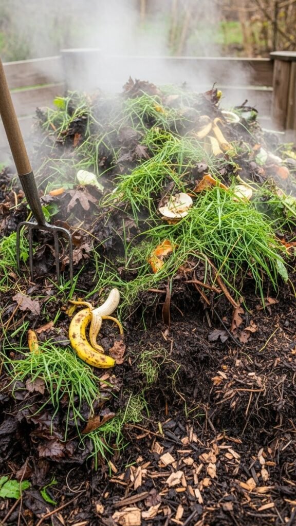 If your compost starts to smell sour or ammonia-like, add more brown materials and turn the pile to restore balance.