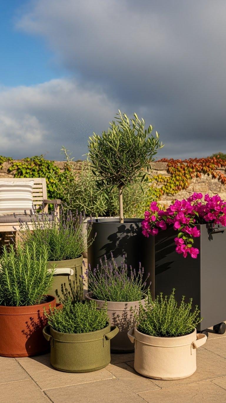 Choose portable fabric pots for breathability and easy storage, or sleek wheeled planters for swift relocation.