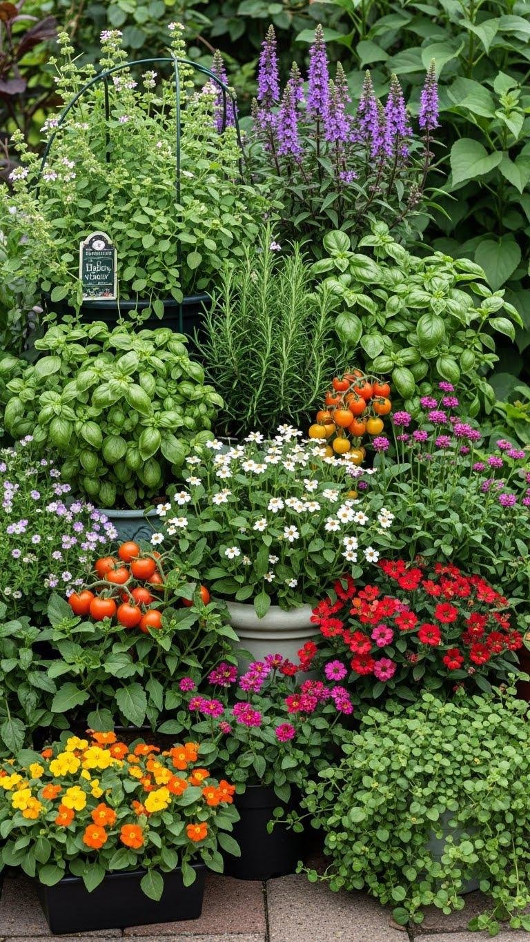 You’ll create vertical contrast and layered textures that maximize impact in small spaces. Mix foliage shapes, pick compact varieties, and rotate seasonally so your portable garden feels liberated and modern.
