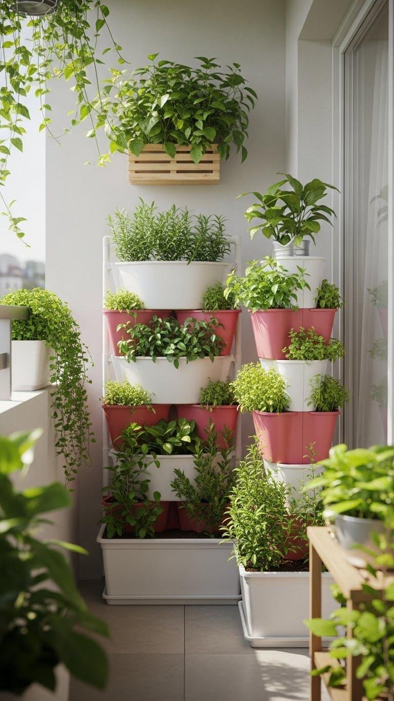 Stackable planters give you vertical real estate, and they pair perfectly with cut-and-come-again salad greens that keep producing from the same small patch.