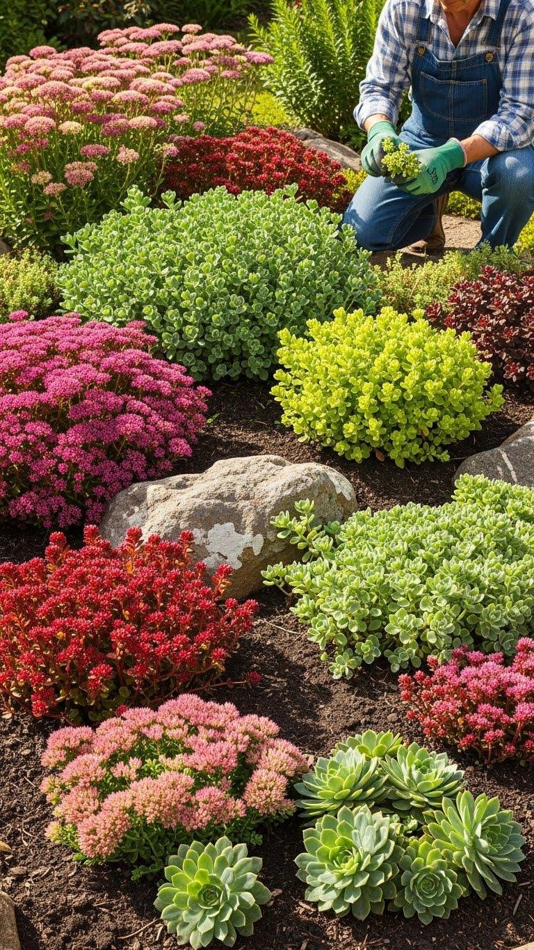 Propagate by cuttings for fast, cheap spread—succulent propagation is straightforward and forgiving. Plant in well-drained soil, give full sun, and thin crowded clumps yearly.