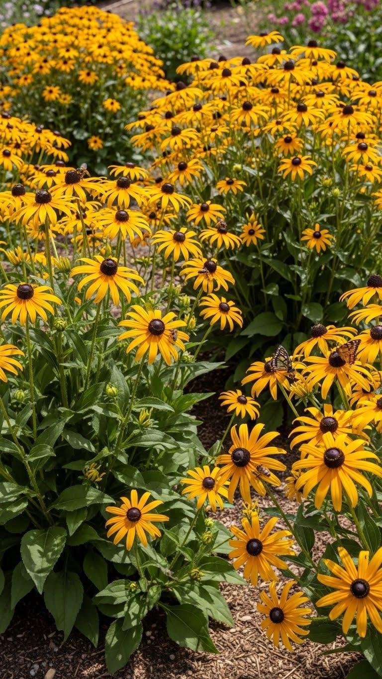If you like the bold, low-fuss impact of black-eyed Susans, coneflowers (Echinacea species) give you similar summer-to-fall presence with a bit more structure and seasonal interest.