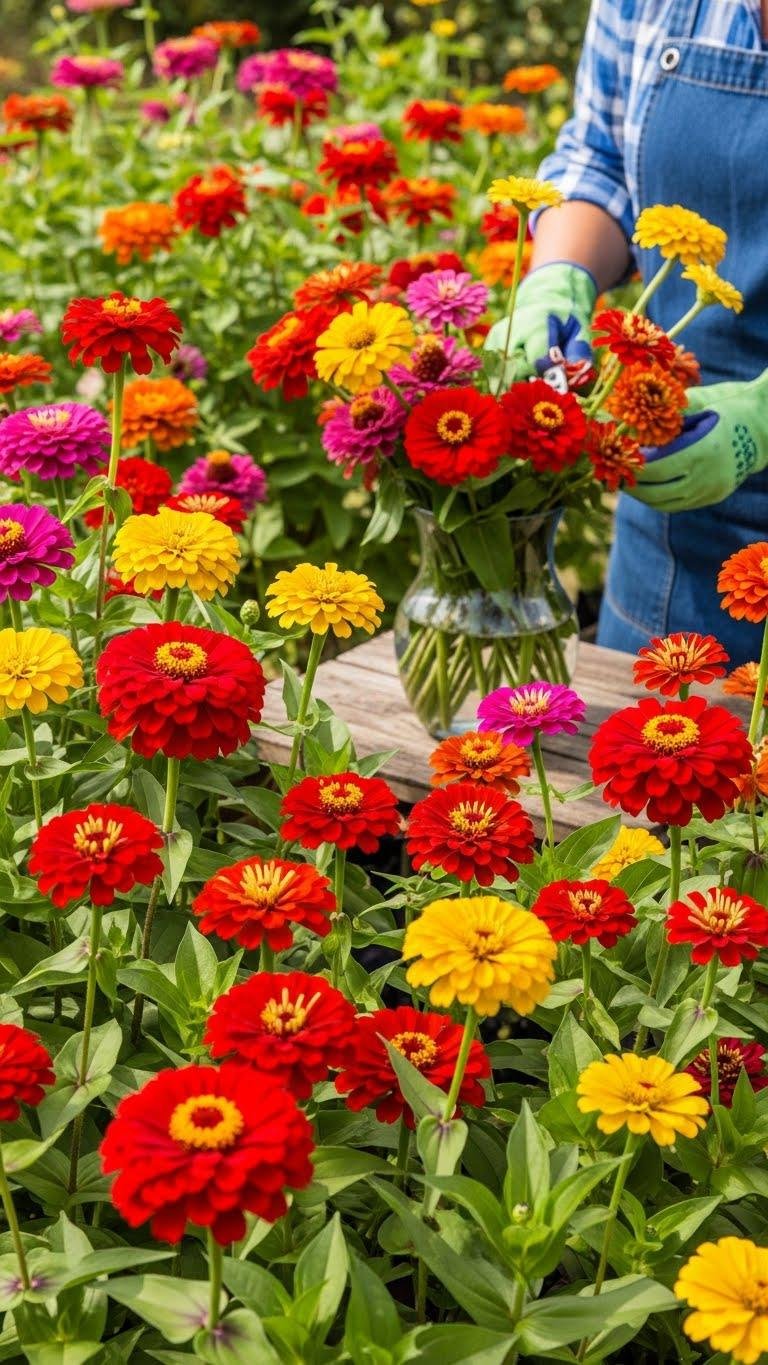 You’ll sow easily, deadhead for continuous flowering, and experiment with zinnia color mixing to create palettes that suit you. Cut stems freely; they excel in cutting vase arrangements, giving you bright, low-maintenance bouquets that travel well.