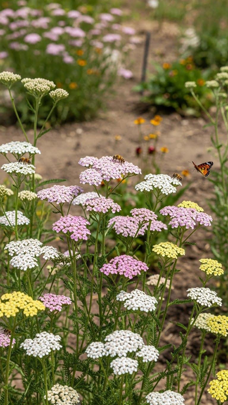 A hardy perennial, yarrow (Achillea millefolium) rewards you with flat clusters of tiny, long‑lasting blossoms in white, pink, or yellow that attract pollinators and tolerate heat, drought, and poor soils.