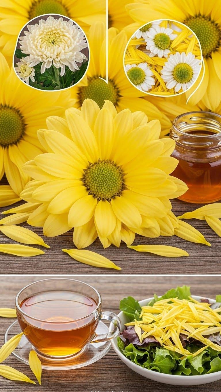When you bite into a chrysanthemum petal, you get a bright, tea-like bitterness that wakes the palate with astringent clarity, edged by a floral honey note that lingers like a faint tea infusion. You’ll slice petals into salads and syrups, steep them for delicate tea infusions, and respect their medicinal properties—herbal, calming, and clean—letting flavor free you to craft bold, airy plates.