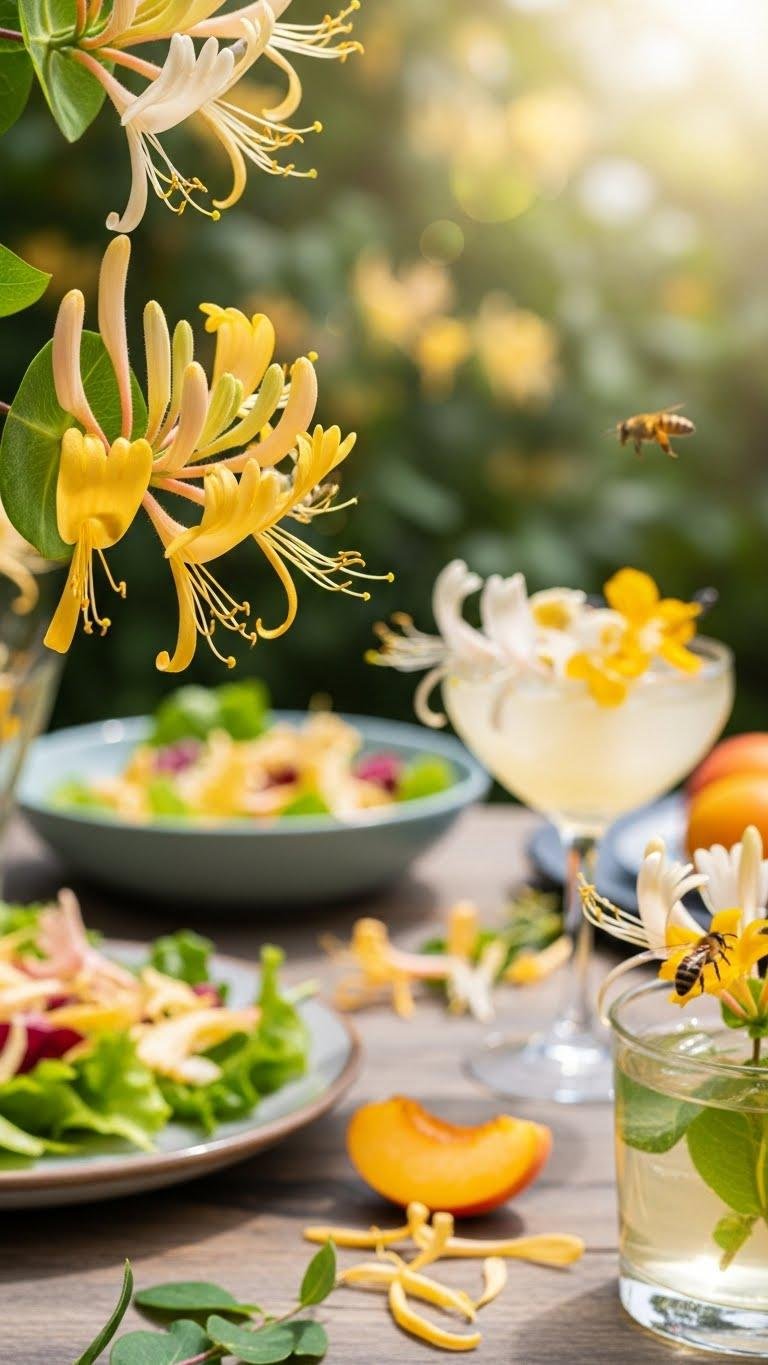 Where jasmine offered a honeyed hush, honeysuckle brings a brighter, nectar-rich clarity that lifts flavors with a citrusy, almost peach-like sweetness. You’ll pluck individual trumpets, inhale their warm, clean perfume, and drape petals over salads, syrups, cocktails.