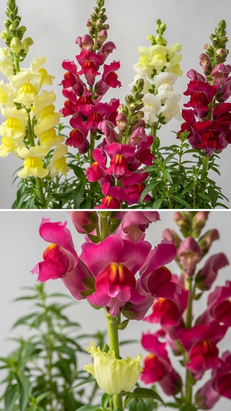Snapdragons surprise you with a crisp, slightly bitter green note and a faint floral sweetness that’s more vegetal than perfumed; bite a lower petal and you’ll find a mild, lettuce‑like texture while the inner throat offers a subtle honeyed hint.