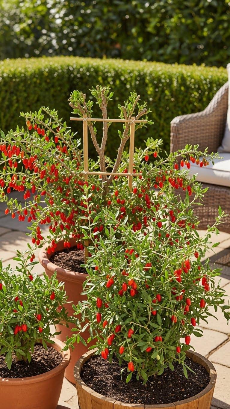 Goji berries thrive in containers when you give them deep, well-draining soil and plenty of sun. You’ll prune to manage size, train canes on a small trellis, and water consistently.