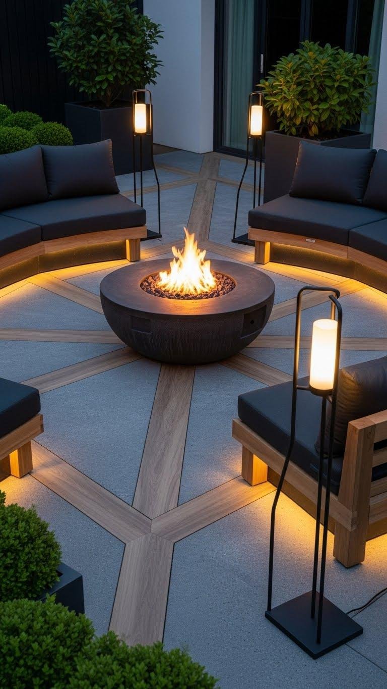 A few well-placed LEDs can transform your fire pit into a functional and dramatic nighttime feature, so plan lighting that complements the flame rather than competes with it.