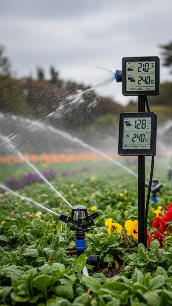 If temperatures drop near freezing or sustained high winds pick up, automate shutoffs so your system stops running before pipes freeze or sprinklers spray into the wind.