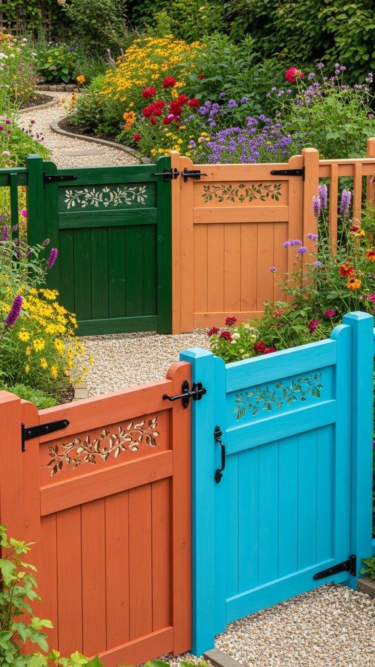 Refresh your garden instantly by painting fences and gates—choose colors that complement your plants and hardscaping to make foliage pop and paths read clearly.