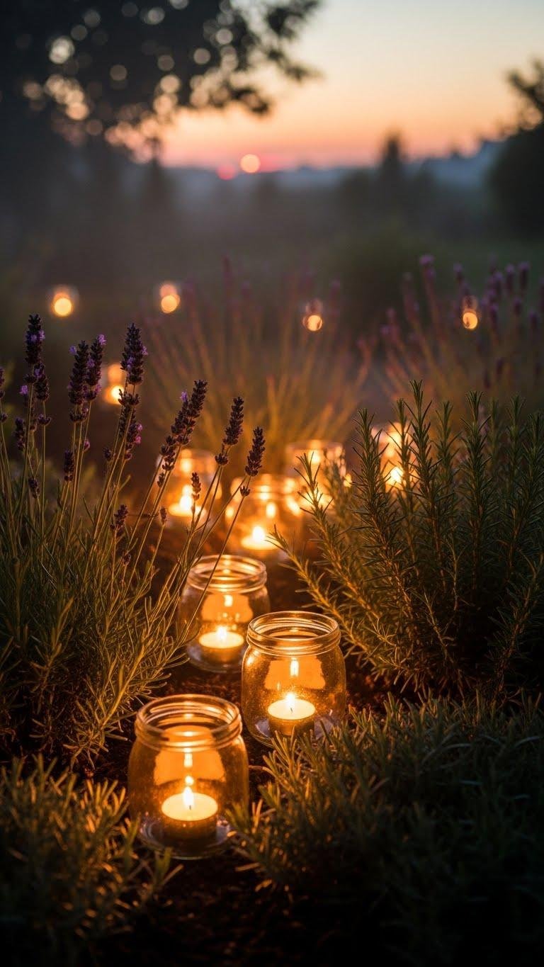 You can cluster tealights in jars among low foliage to create flicker focalpoints, tuck candles into scented corners near lavender or rosemary, and move them as you need. They’re cheap, safe with holders, and let you sculpt cozy, plant-forward pockets of light instantly.