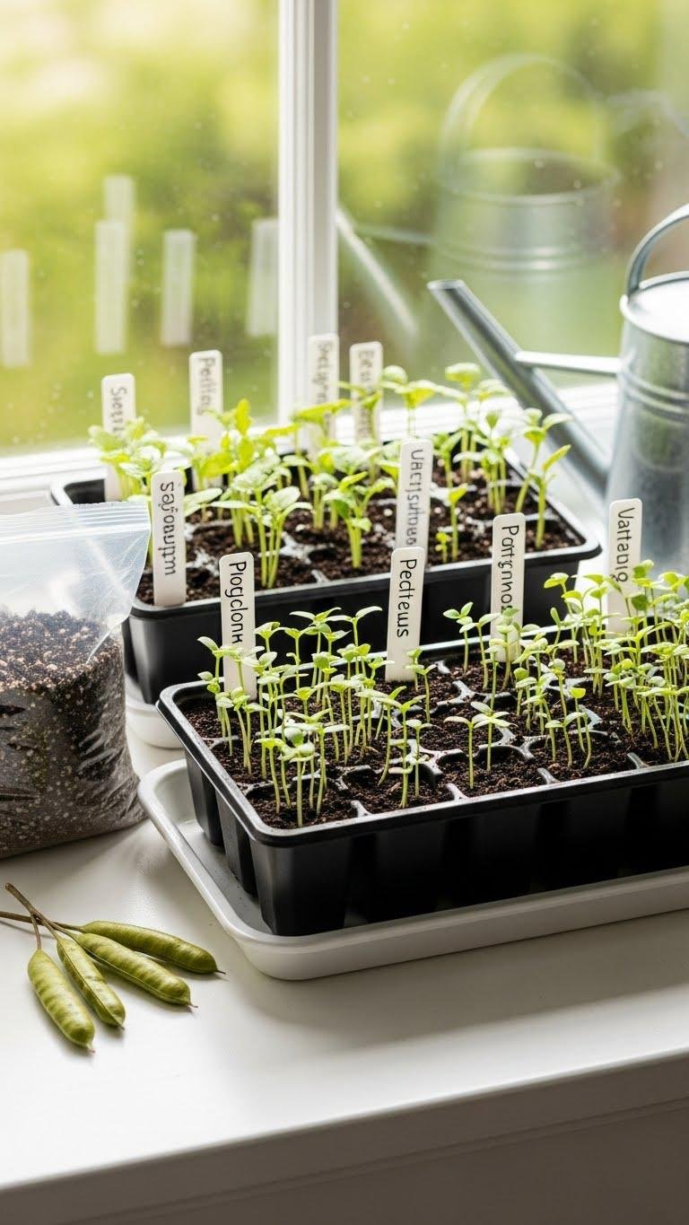 Use shallow cells, free potting mix, clear labels, and strict tray sanitation to prevent damping-off.
