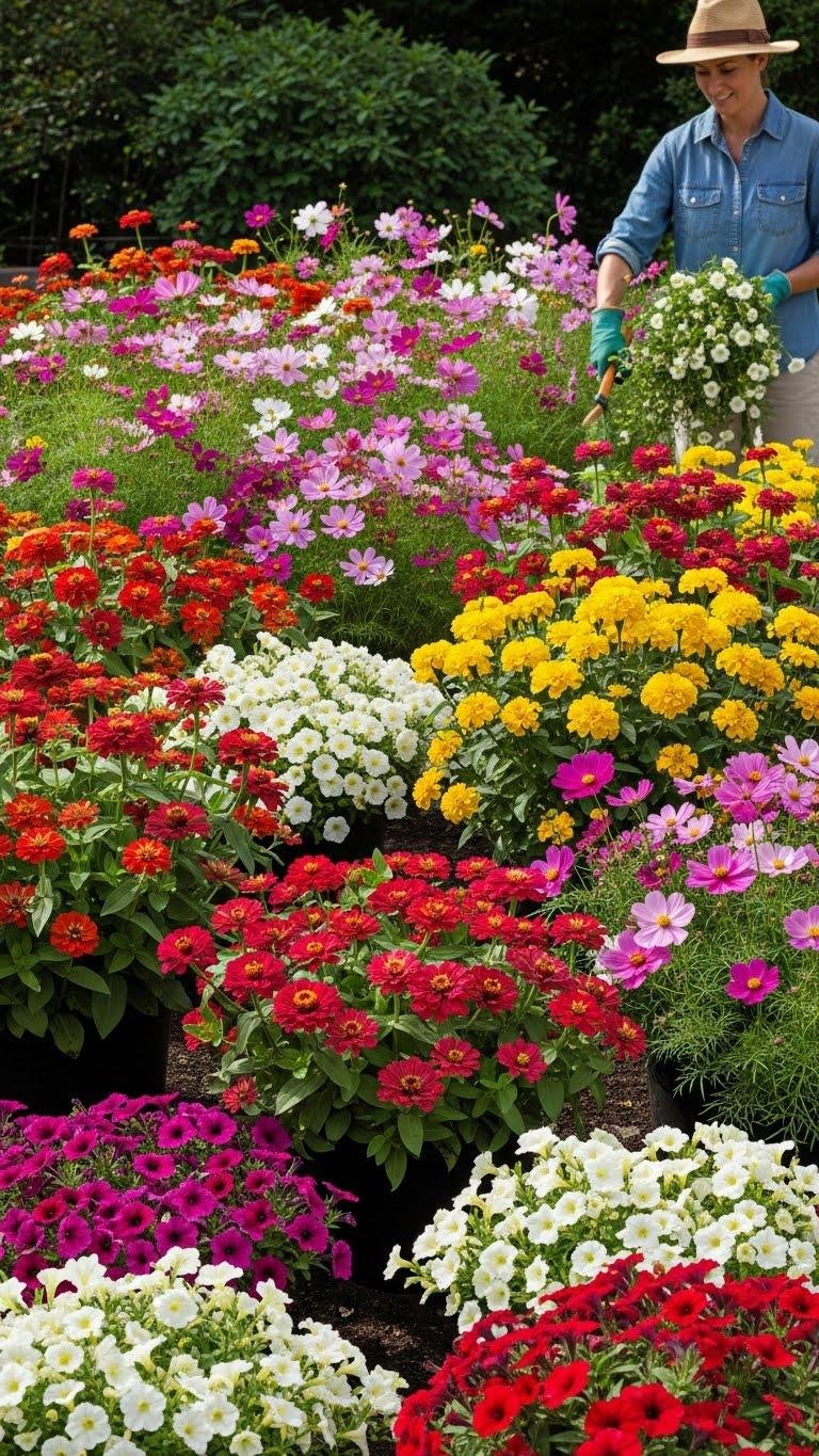 Brighten bare beds fast by planting annuals that flower the same season—choose vigorous options like zinnias, cosmos, marigolds, and calibrachoa that germinate or bloom quickly so you see color within weeks.
