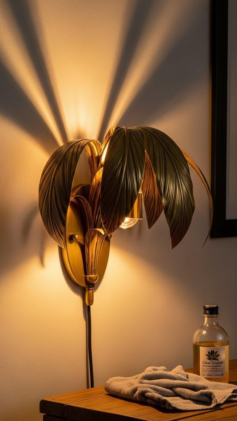 If you liked the seafaring textures of the brass-and-rope sconce, consider swapping in a bold oversized metal banana leaf up light to amplify tropical scale and shadow play. You’ll mount an adjustable arm, angle the LED to wash textured walls, and finish with matte green patina. The banana leafscape creates an oversized silhouette that reads like living architecture, freeing your garden to feel wild and curated.