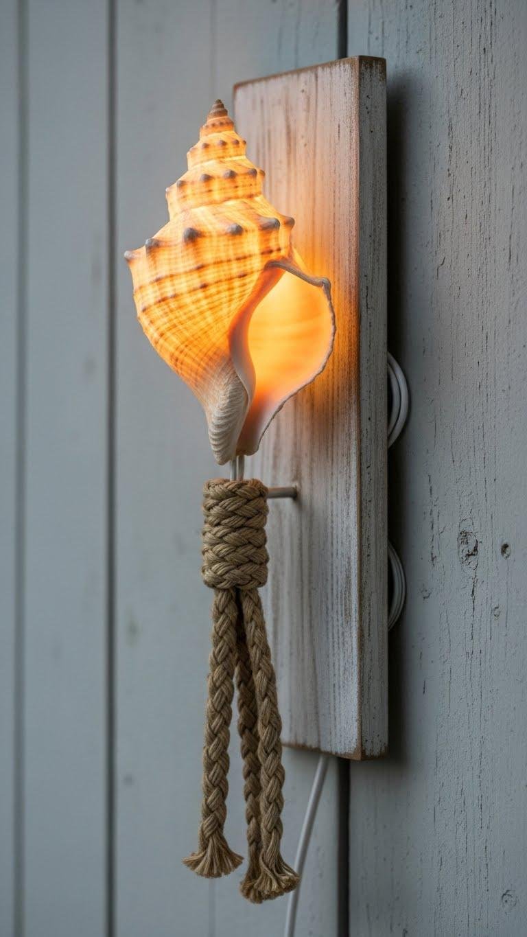 A conch-shaped shell backed by soft LED lighting gives your wall a sculptural glow that reads both coastal and contemporary.