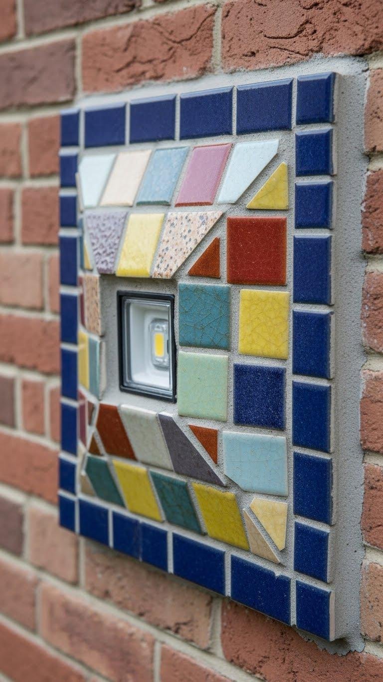 Create a weatherproof ceramic tile mosaic light that adds texture and color to your garden wall while standing up to rain and sun. You’ll choose frost-resistant tiles, set them with outdoor grout, and angle the fixture for splash protection.