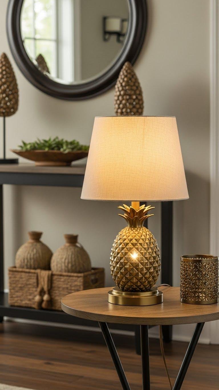 Gently aging brass gives the pineapple accent lamp a warm, tropical elegance that’s both decorative and functional; you’ll use it to add focused, ambient light on a side table or entry console.