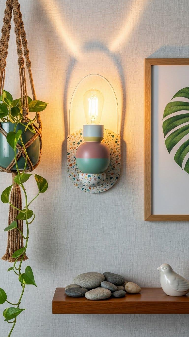 Anchor a terracotta pot to a simple bracket and you’ve got a sconce that blends planting and lighting into one purposeful fixture. You’ll choose clay scented terracotta, seal edges for moisture resistant performance, and fit a low‑heat LED puck. Mount at eye level, tuck a trailing succulent, and enjoy a minimalist, free‑spirited accent that lights paths and nurtures plants with easy maintenance.
