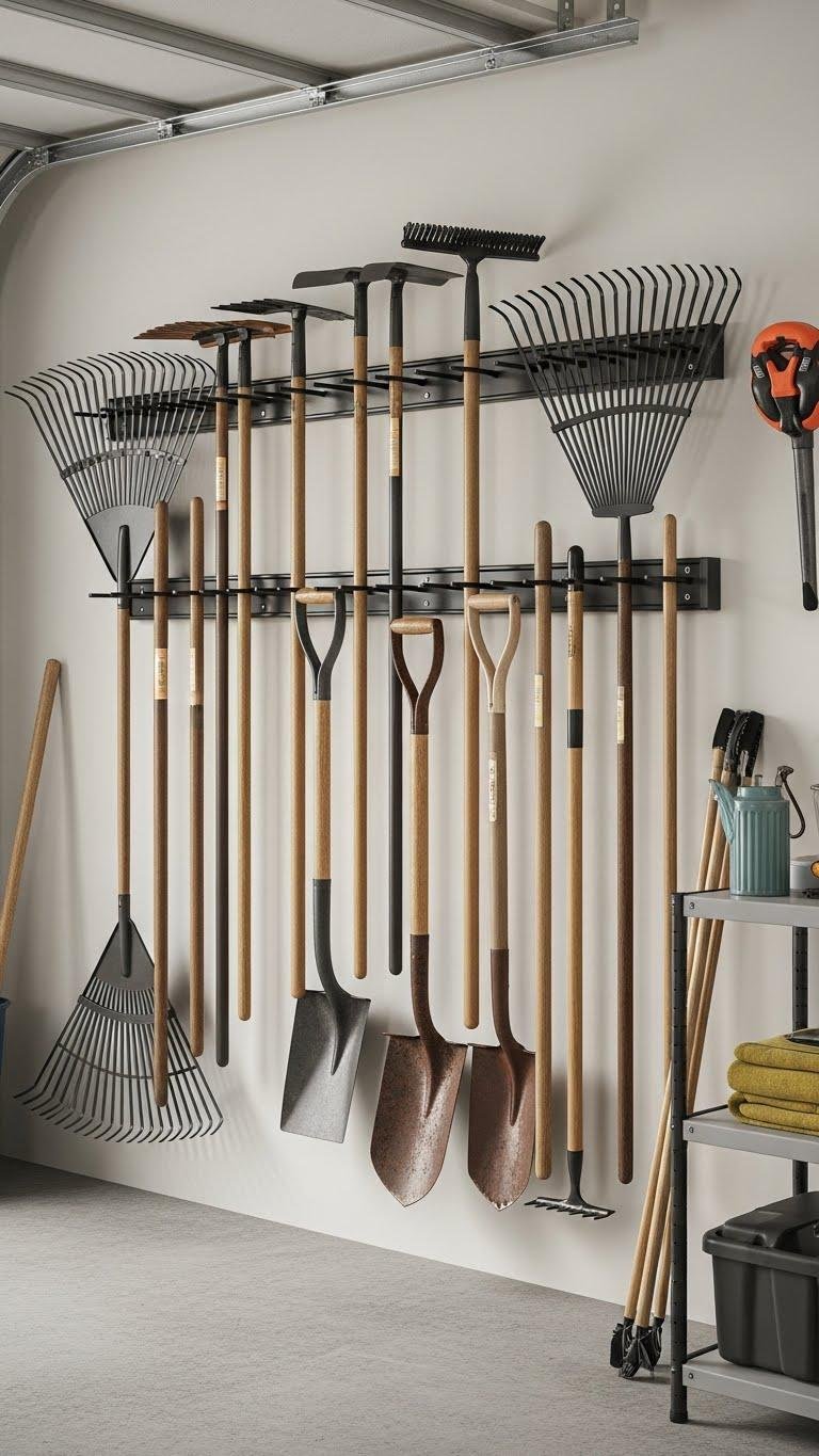 A 36‑inch universal tool rack gives you a compact, visible home for rakes, shovels, hoes, and long-handled tools so you can clear floor clutter fast.