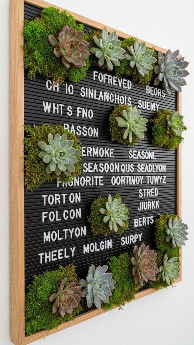 If your air plant trellis brought sculptural greenery to a small wall, an oversized letterboard living wall amps up that idea with bold, text-driven planting.