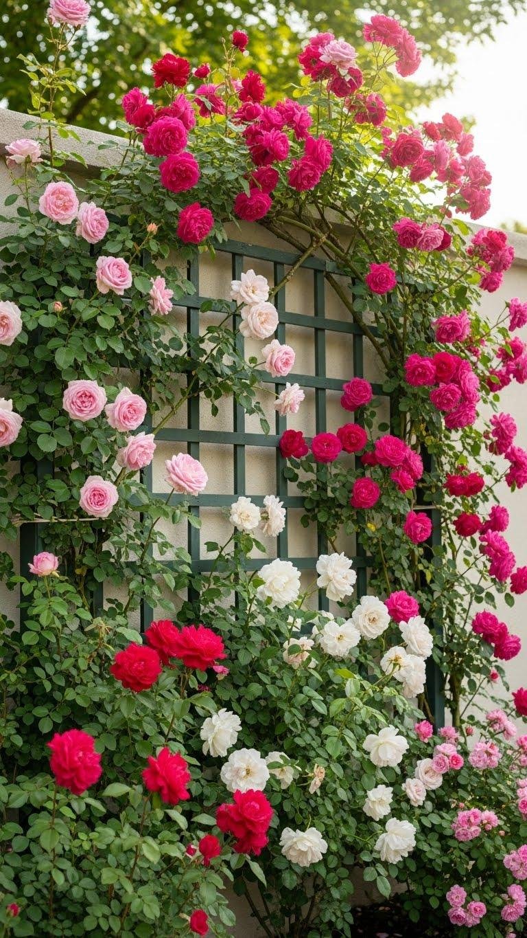 When you train climbing roses up a trellis, you turn a plain wall into a fragrant, vertical centerpiece that changes with the seasons. You’ll choose fragrant climbers, tie canes to arch support, and prune to encourage airy growth.