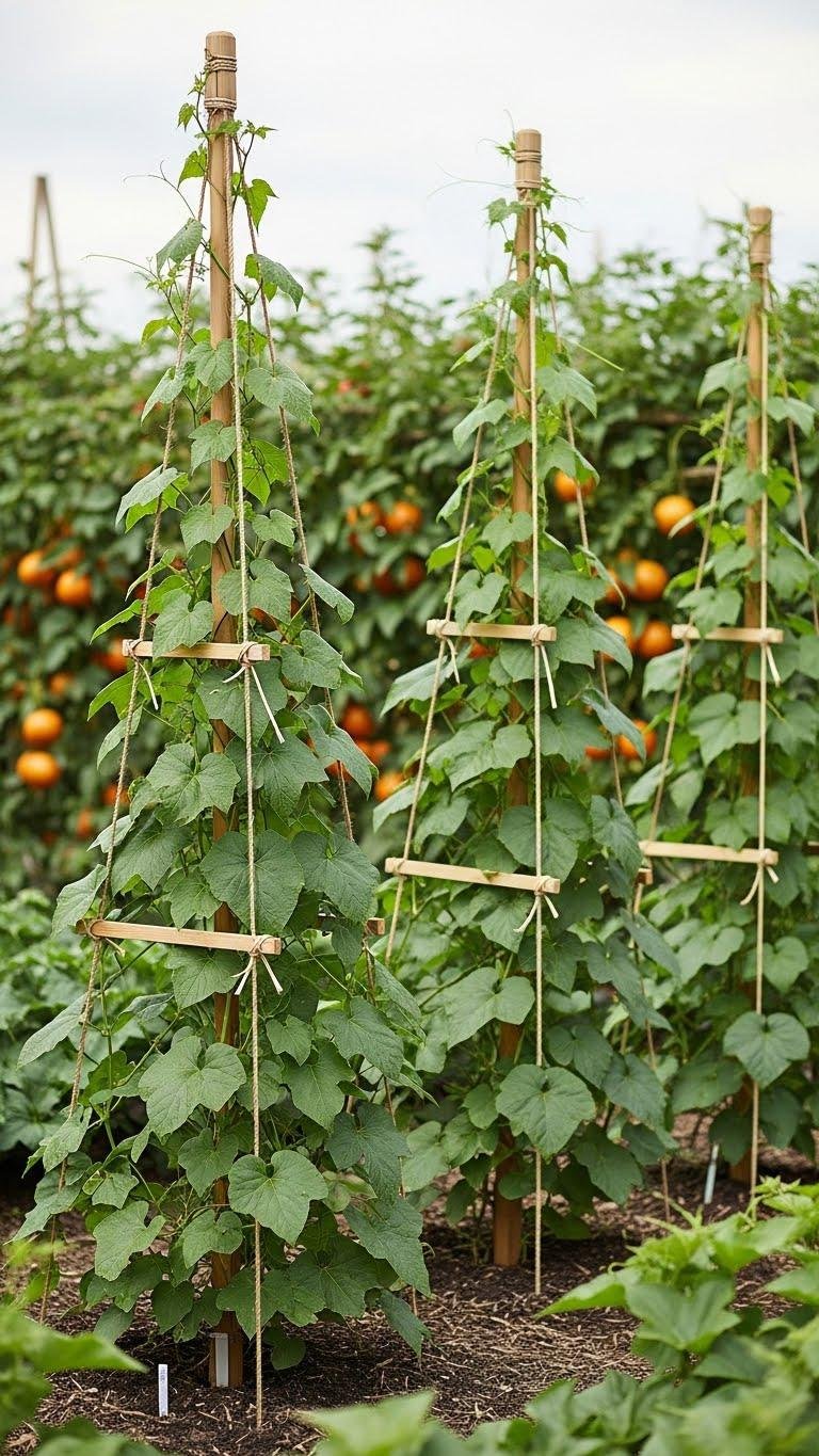 When you let vining plants sprawl without a plan, they tangle, break, and underperform — and you lose yield and tidy appearance. You’ll save time and harvest by installing trellises early; proper support timing prevents root stress and stem damage.