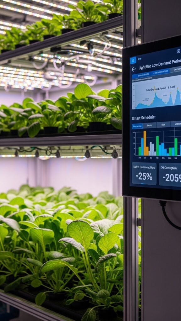 When you combine dimming controls with smart schedules, you’ll cut energy use while matching light to plants’ actual physiological needs; research shows reducing intensity during low-demand periods and shortening photoperiods where appropriate lowers kWh consumption without sacrificing yield.