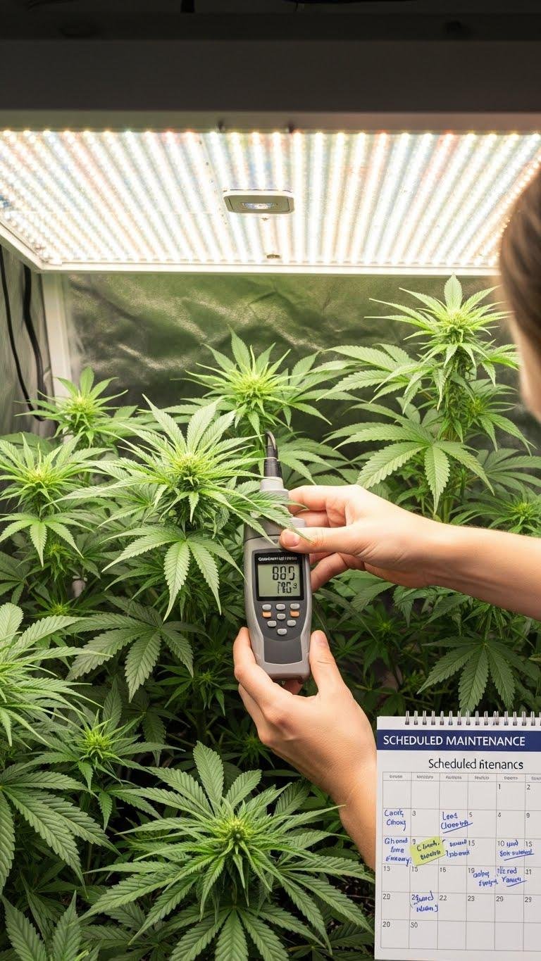 Regularly clean your fixtures and track their output so your lights keep delivering the PAR levels your plants need.