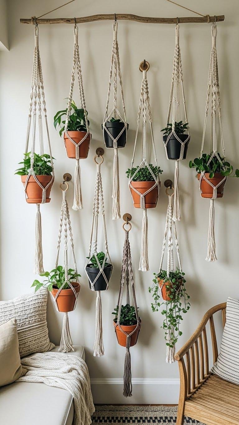 You’ll choose plant friendly cord, measure for pot depth, and tie clean bohemian knotwork—square knots and alternating half-hitches—for secure support.