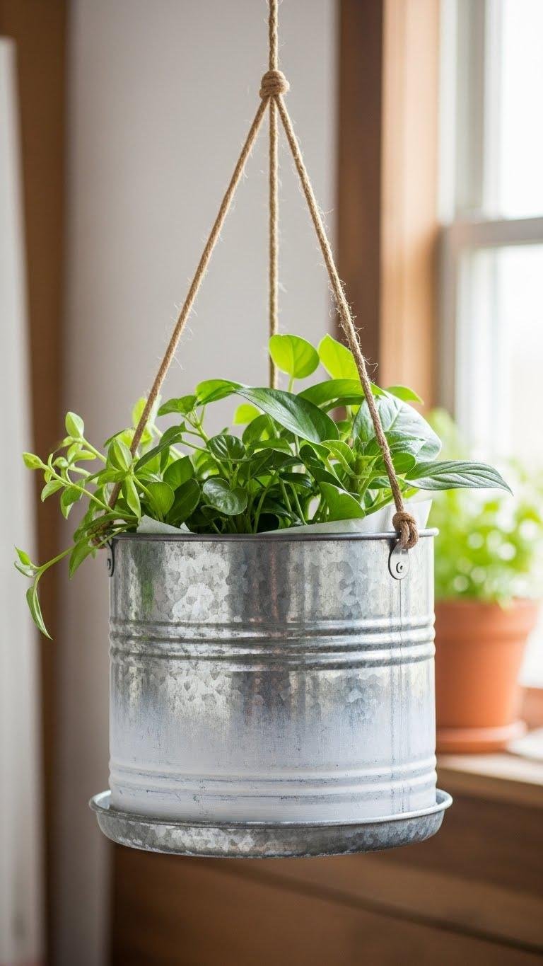 You’ll pick matte enamel for a modern, low-gloss look, mask links with geometric stencils for pattern, and hang confidently, knowing your planter reflects purpose and freedom.
